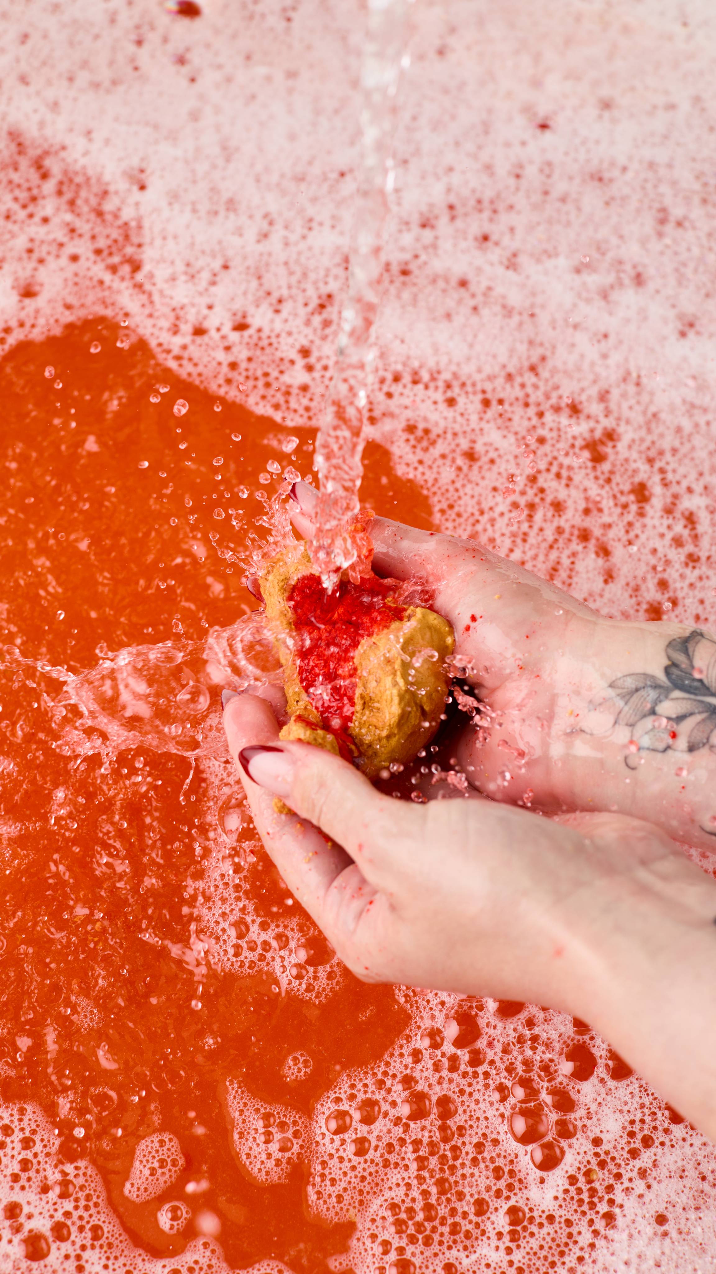 – Inspired by beautiful Christmas cakes, the shape is made using muslin to help squeeze and twist the bubble bar when still wet to create the pointed tip. This is then sprayed with our plastic-free glitter to make it sparkle and shine.